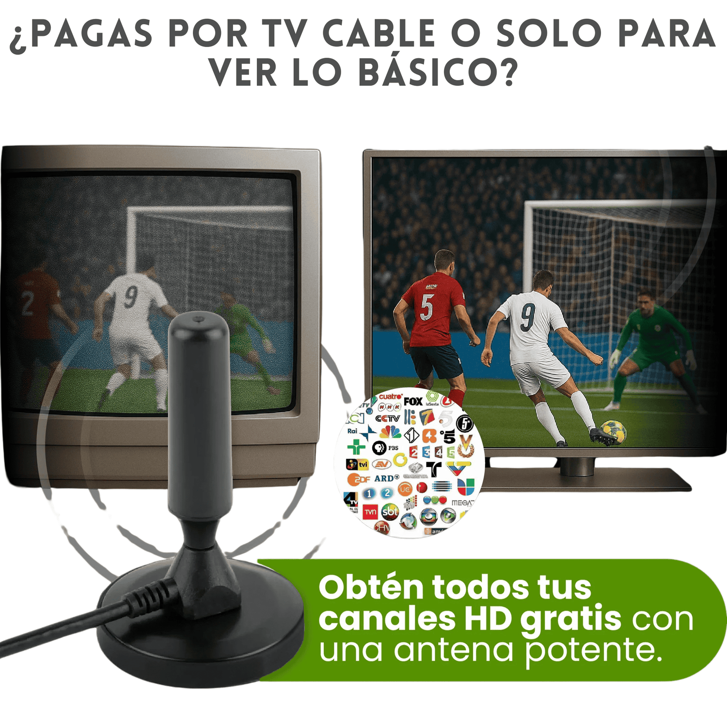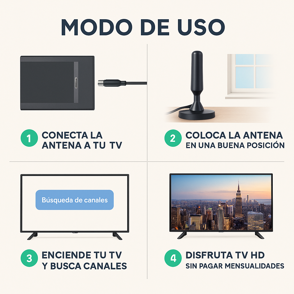 - Funciona con TVs modernos y antiguos (requiere sintonizador digital)