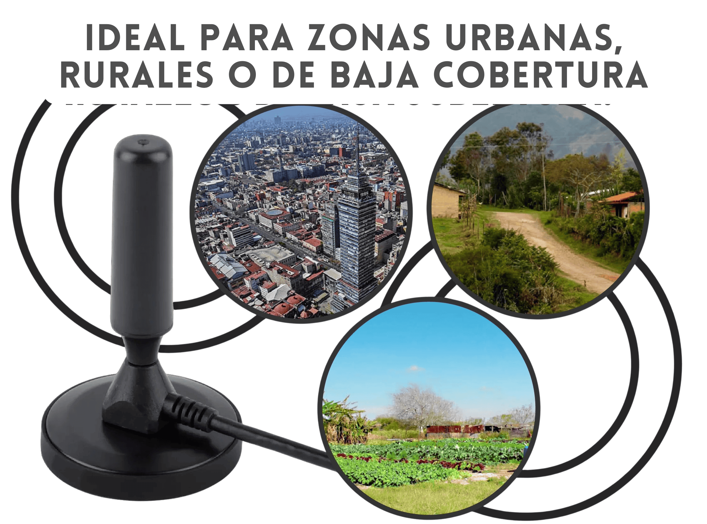 - Altura base + antena: 13 cm – 18 cm (según modelo)