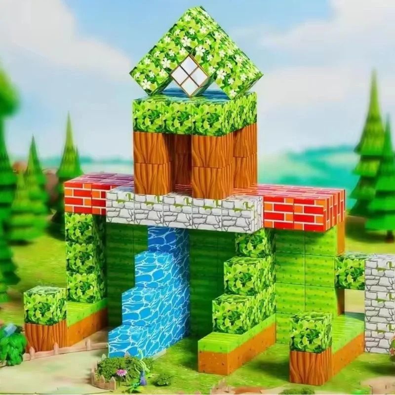 - 75 bloques magnéticos con diseño tipo pixel
