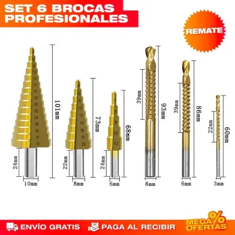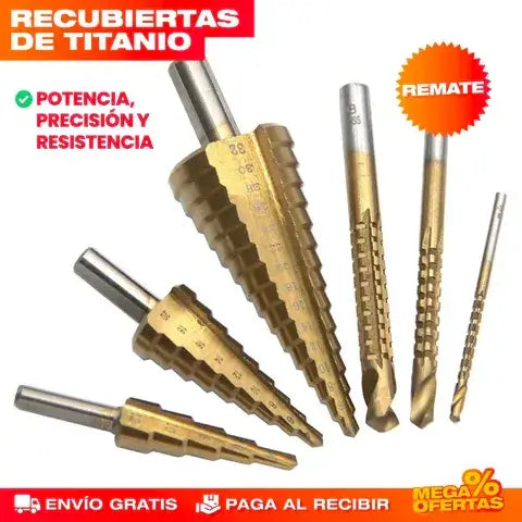 6 brocas escalonadas de titanio