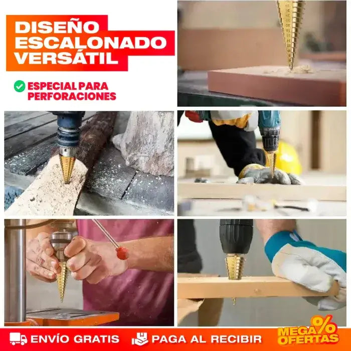 Nombre: DrillMaster™ – Set de 6 Brocas Escalonadas de Titanio