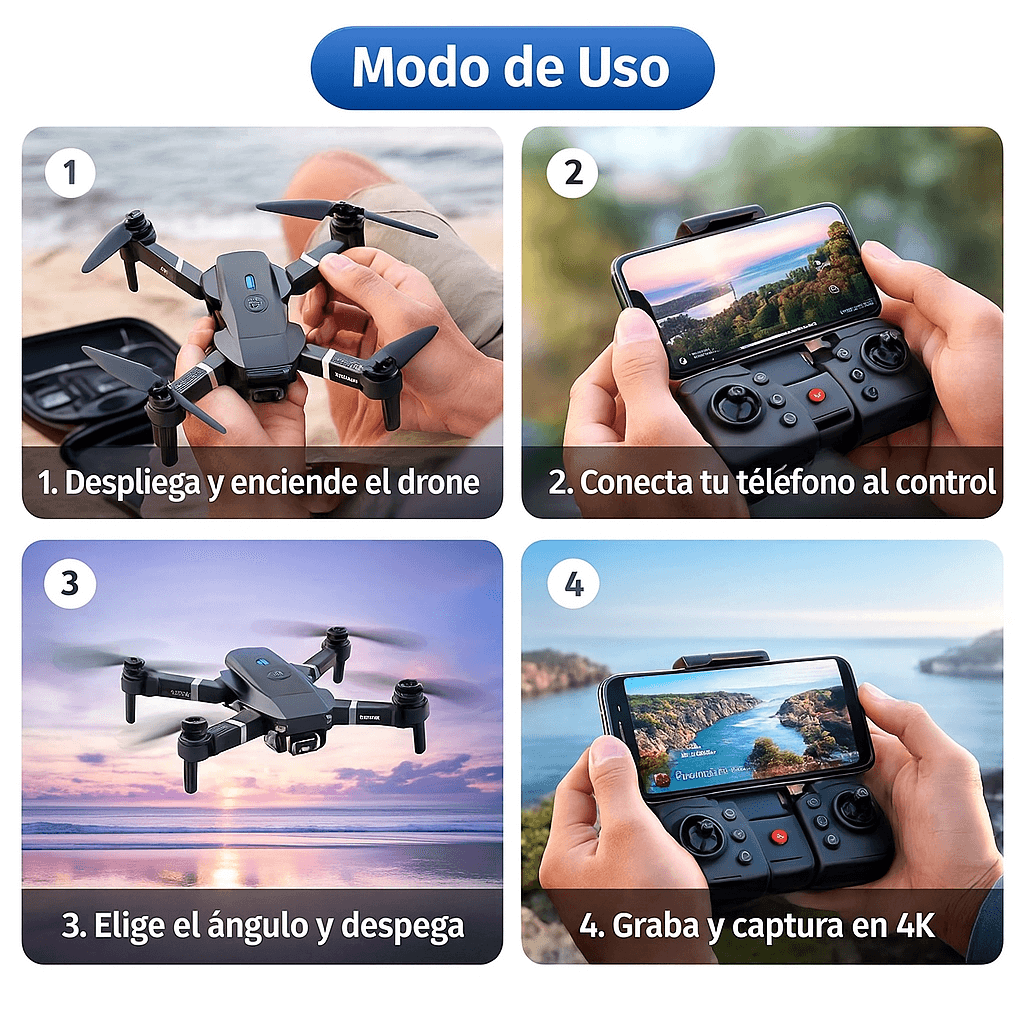 Imagina grabar un amanecer desde el aire, seguir el recorrido de un ciclista o capturar un evento familiar. ¡Haz que tus recuerdos sean épicos y como nunca antes!