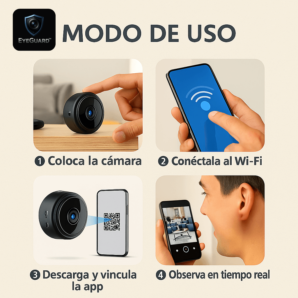 EyeGuard™ es la cámara que está cambiando cómo las familias protegen su hogar. Instálala en minutos y disfruta de la tranquilidad de ver lo que necesitas.